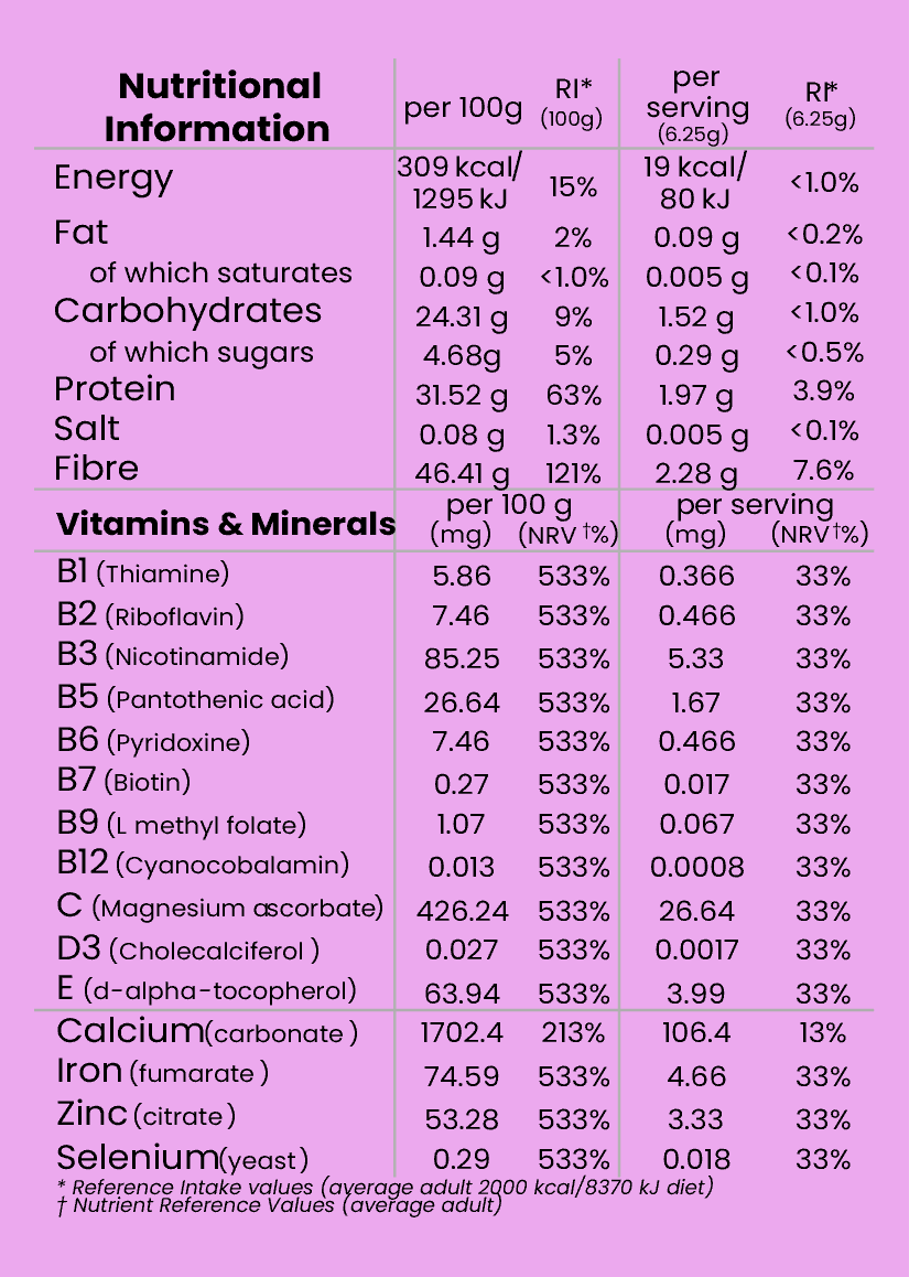 How to use: a versatile powder blend with a subtle hint of cranberry, add to smoothies, yogurt, or use as a cereal topper, alternatively simply mix with water.